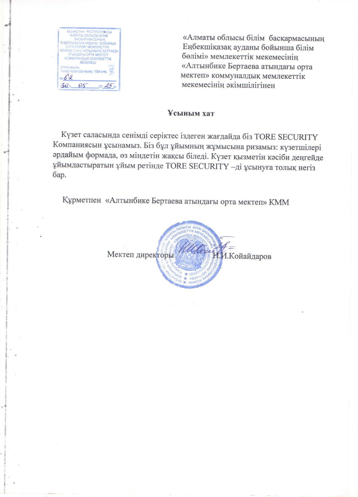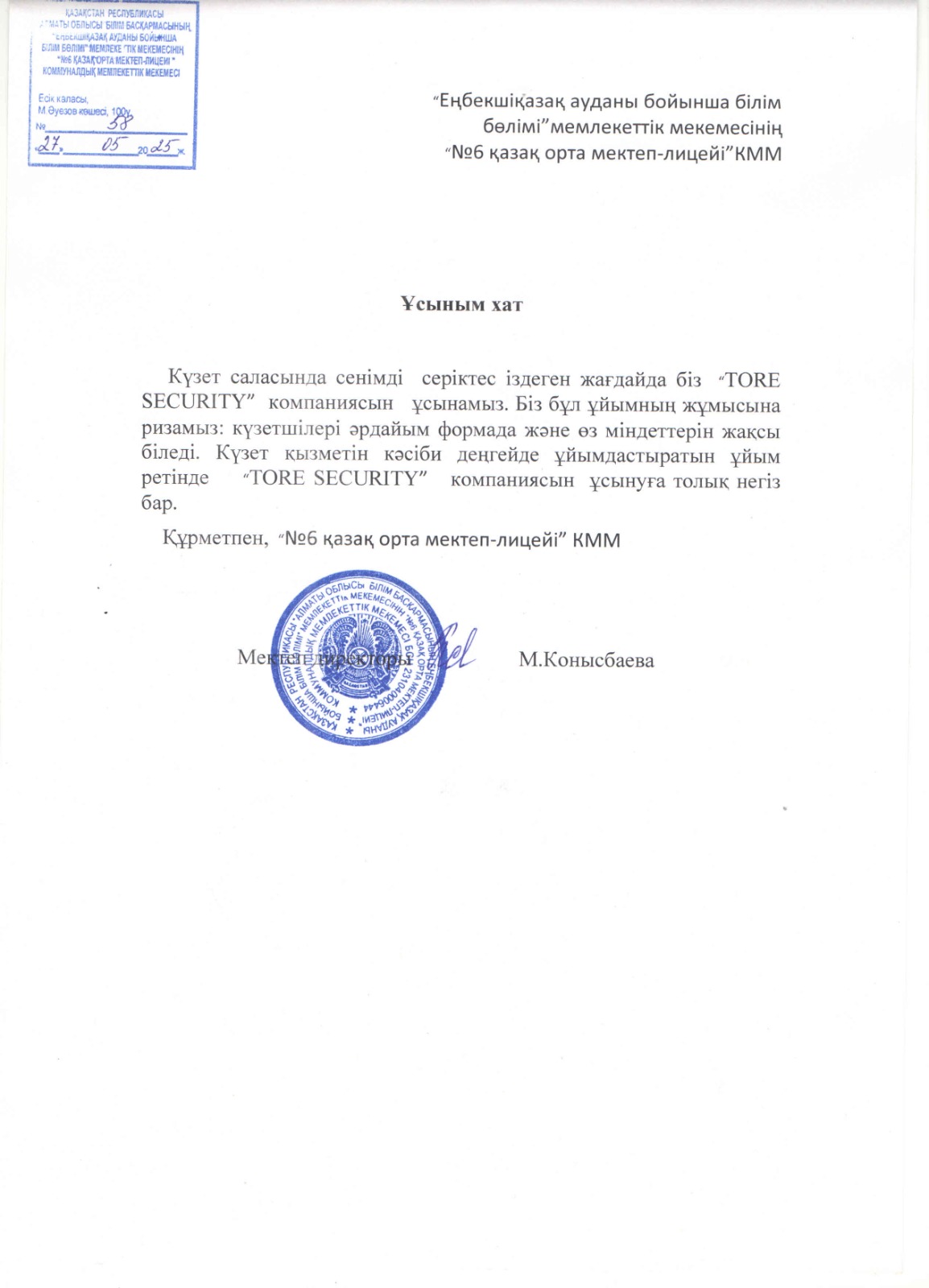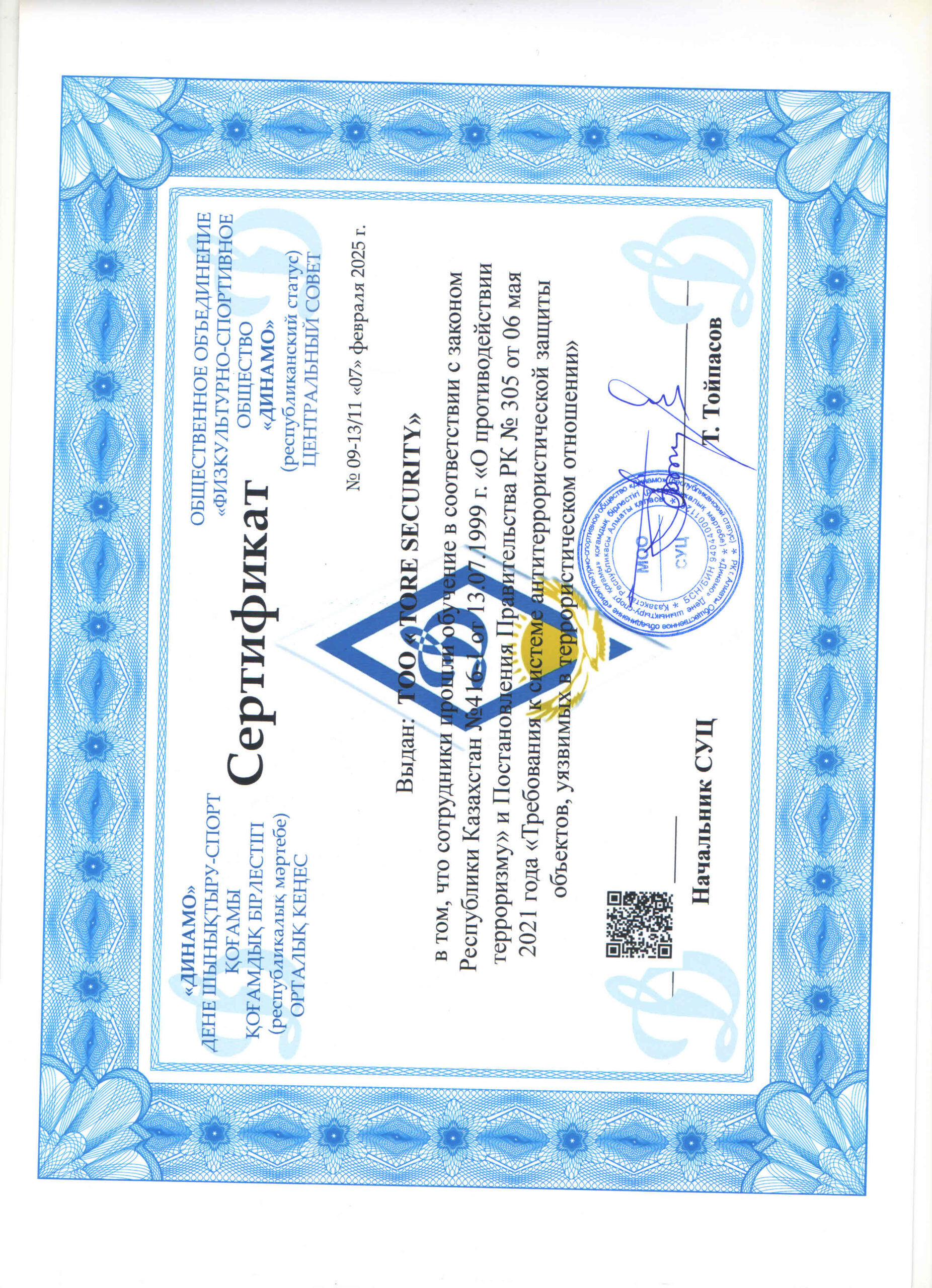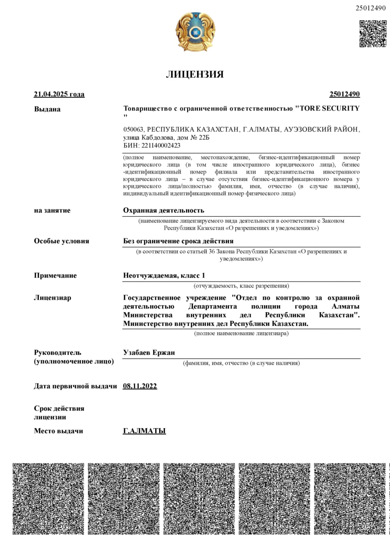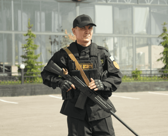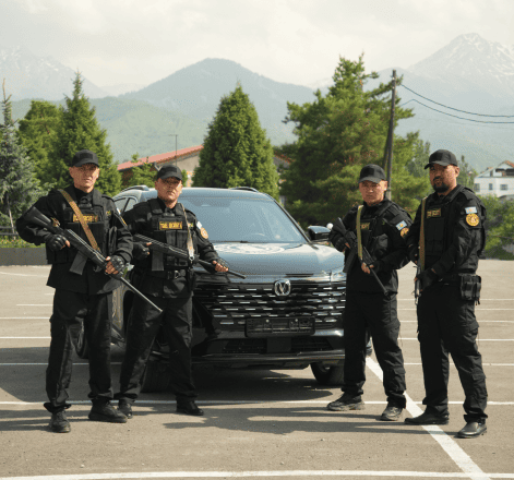 Сотрудники охраны имеют официальные разрешения на ношение и применение гладкоствольного и травматического оружия. Хранение и использование — строго по законодательству РК и внутренним регламентам.