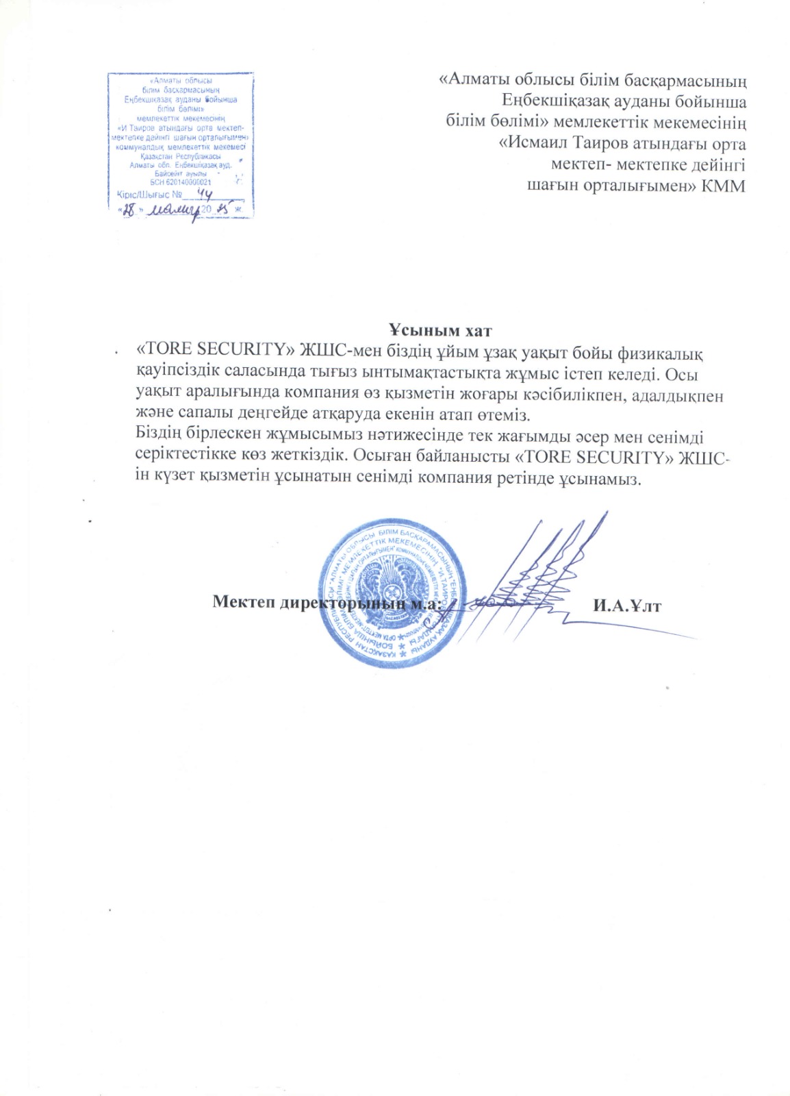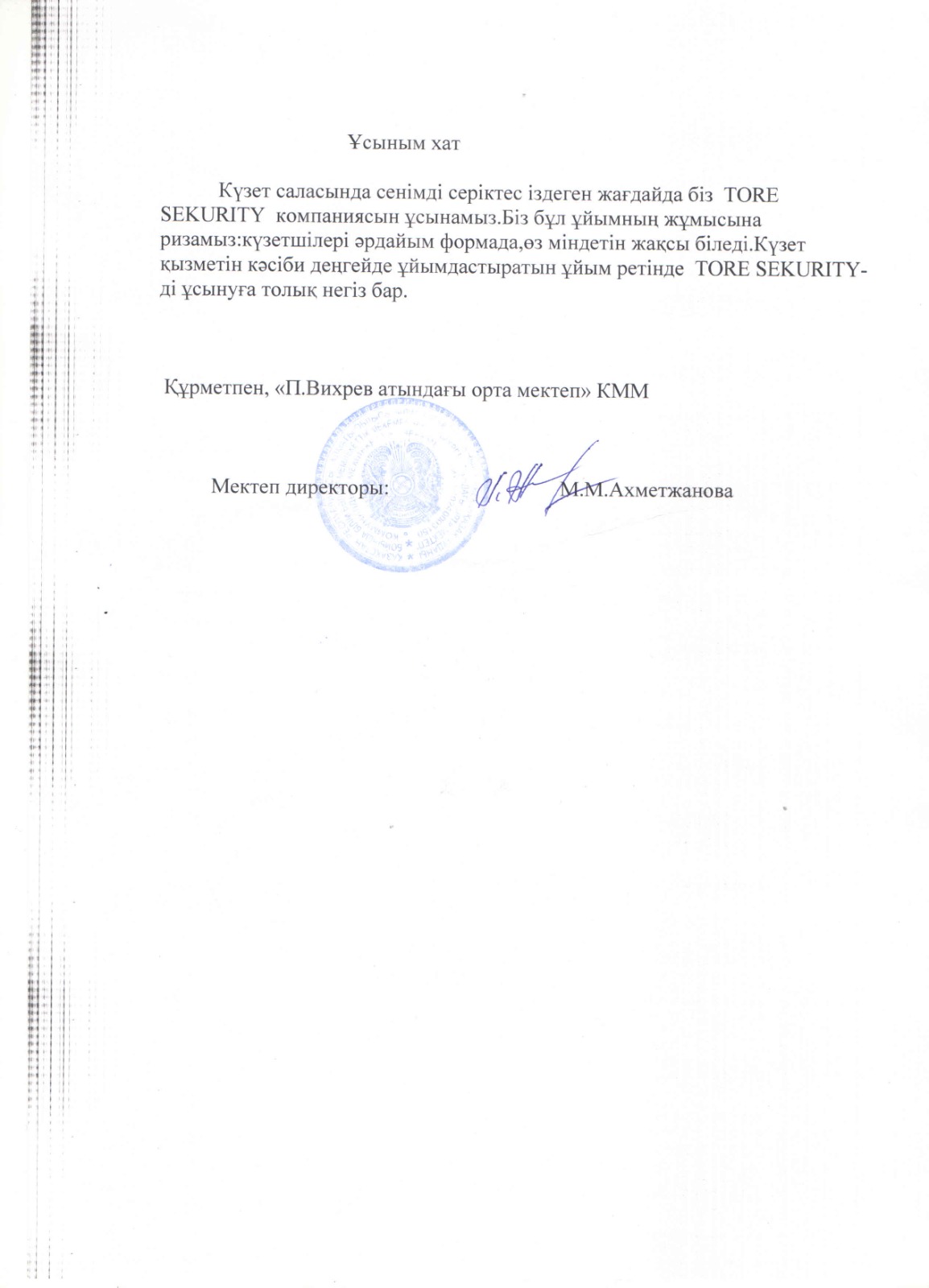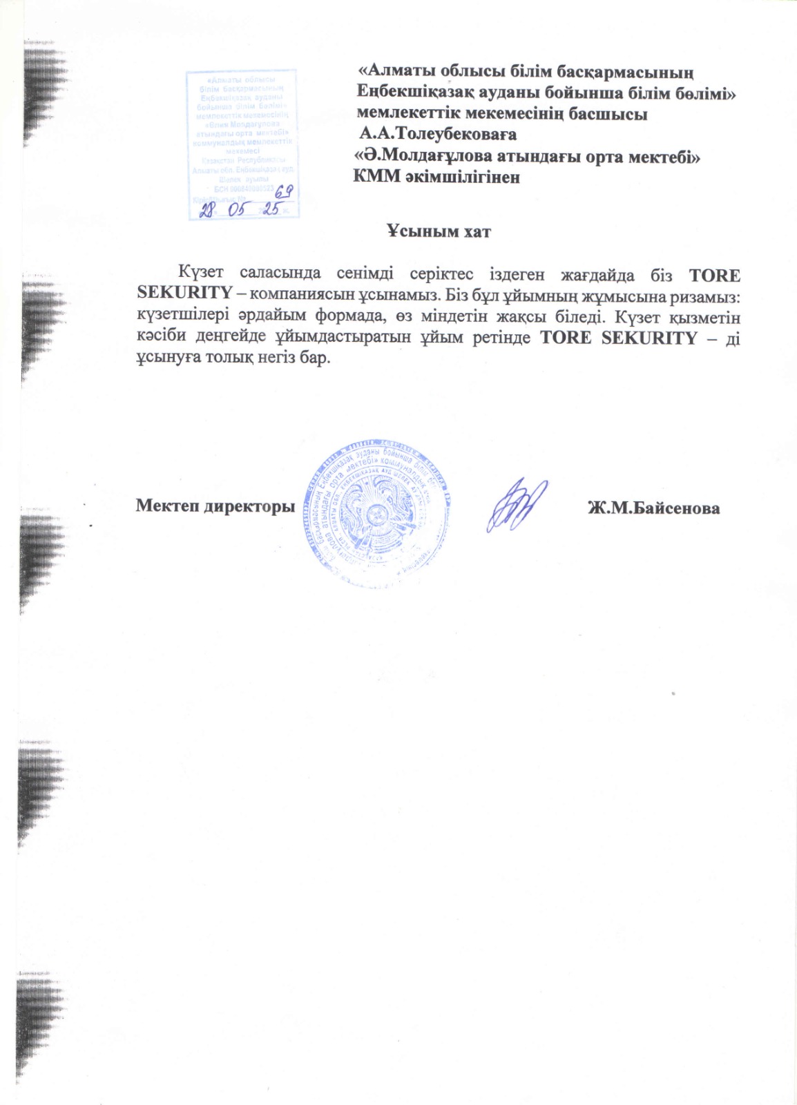 Сотрудники охраны имеют официальные разрешения на ношение и применение гладкоствольного и травматического оружия. Хранение и использование — строго по законодательству РК и внутренним регламентам.