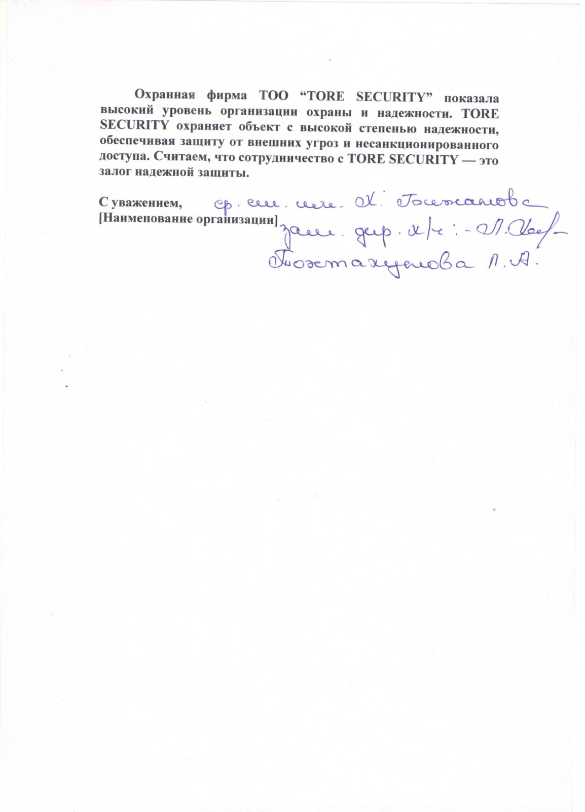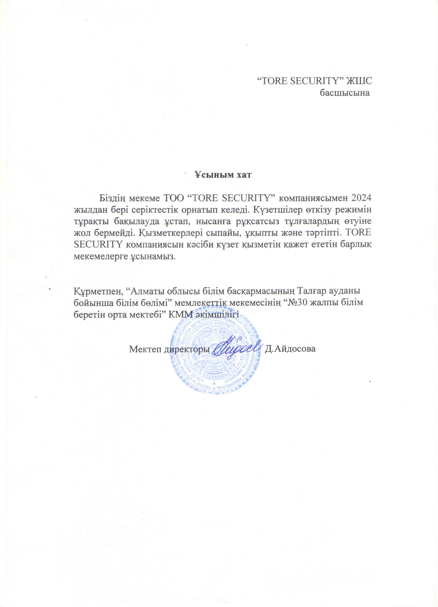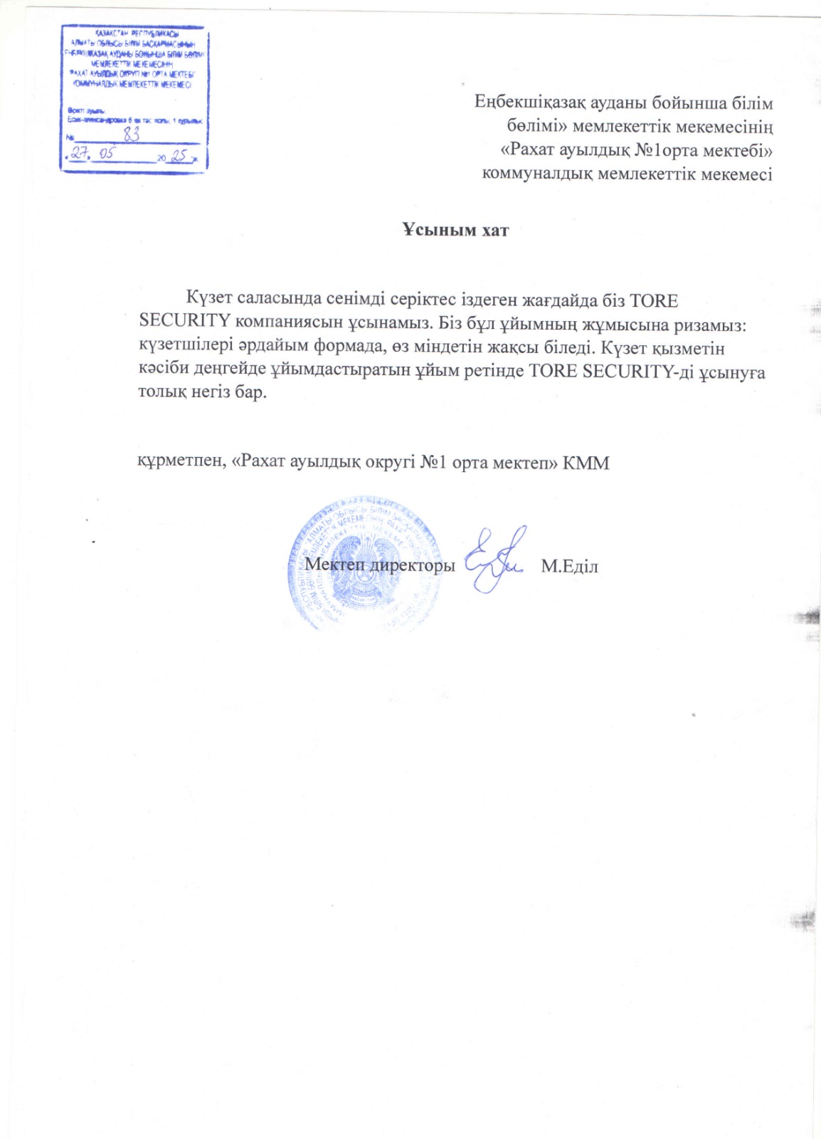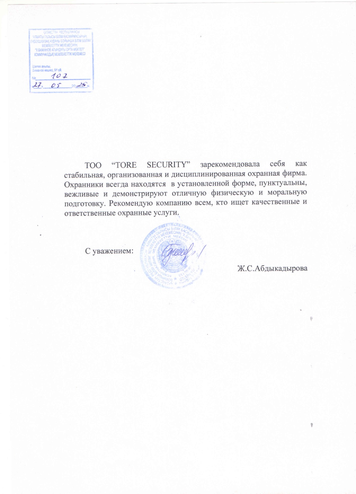 Сотрудники охраны имеют официальные разрешения на ношение и применение гладкоствольного и травматического оружия. Хранение и использование — строго по законодательству РК и внутренним регламентам.