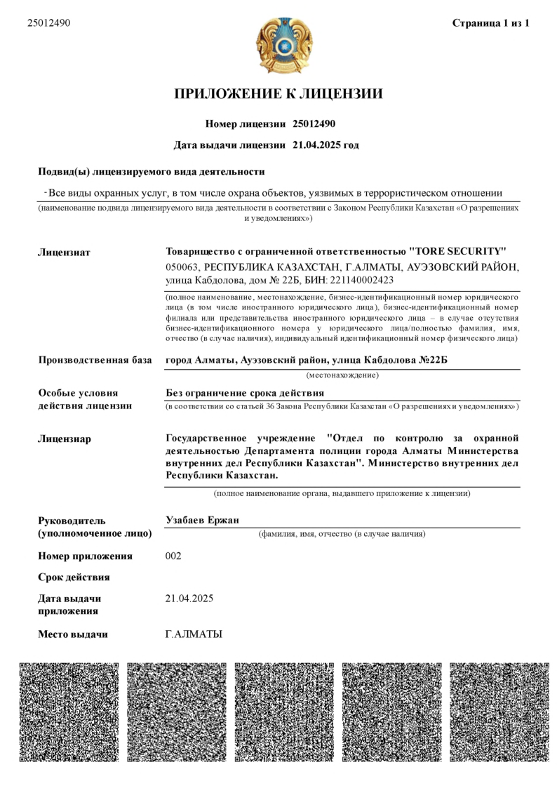Работаем легально и прозрачно. Ниже — ключевые документы, подтверждающие квалификацию и право предоставлять охранные услуги. Заверенные копии доступы по запросу.